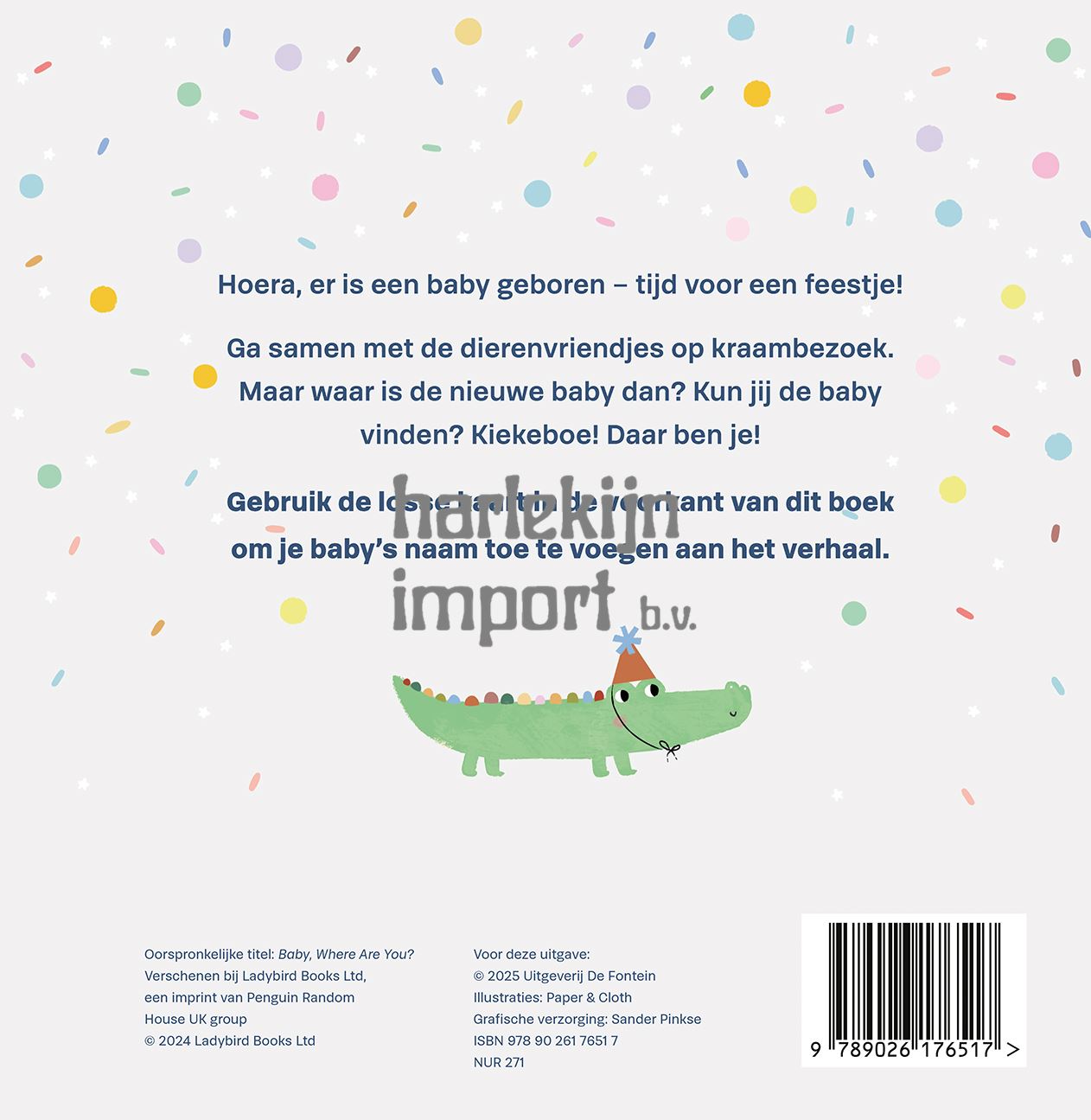 Hoera, er is een baby geboren - tijd voor een feestje! Ga samen met de dierenvriendjes op kraambezoek. Maar waar is de nieuwe baby dan? Kun jij de baby vinden? Kiekeboe! Daar ben je! Gebruik de losse kaart in de voorkant van dit boek om je baby's naam toe te voegen aan het verhaal.