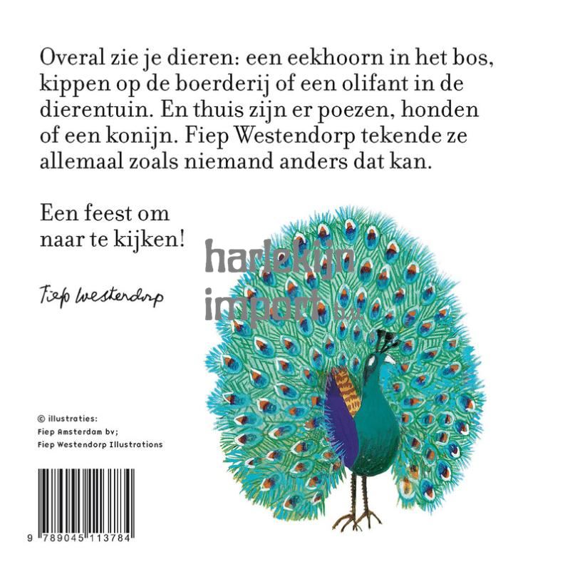 Een eigenwijze kat, een wollige beer, een grappige kakkerlak... Welkom in de dierenwereld van Fiep! Ontdek de meest uiteenlopende soorten, van huisdieren en boerderijbeesten tot circusdieren. Een kartonboekje met illustraties uit de schatkamer van Fiep Westendorp.