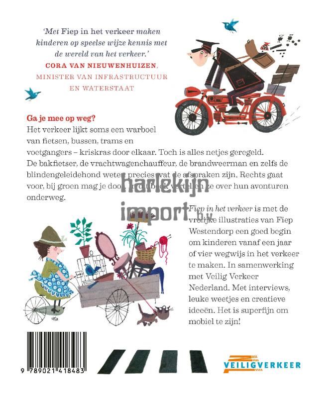 Het verkeer lijkt soms een warboel van fietsen, bussen, trams en voetgangers – kriskras door elkaar. Toch is alles netjes geregeld. De bakfietser, de postbode, de sushibezorger en de brandweerman weten precies wat de afspraken zijn. Rechts gaat voor, bij groen mag je door. Ook de jongen op het longboard, de blindengeleidehond en de treinconducteur kennen de regels. In dit boek vertellen ze over hun avonturen onderweg. Fiep in het verkeer is een rijk geïllustreerd non-fictieboek dat kinderen vanaf vier jaar wegwijs maakt in het verkeer. Met interviews, leuke weetjes en creatieve ideeën. Zo ontdek je hoe je je eigen vliegtuig kunt knutselen of een raceparcours voor je skelter kunt uitzetten. Het is superfijn om mobiel te zijn!