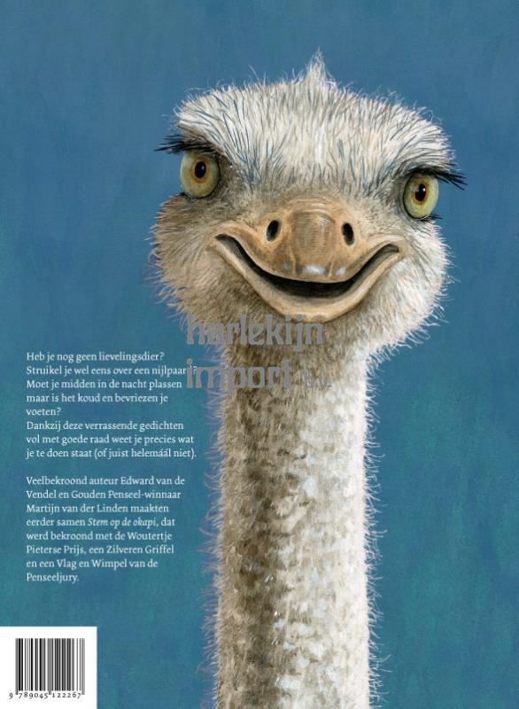 Veelbekroond auteur Edward van de Vendel schreef sprankelende gedichten die meesterlijk werden geïllustreerd door Gouden Penseelwinnaar Martijn van der Linden. Eerder maakten zij samen Stem op de okapi, dat werd bekroond met de Woutertje Pieterse Prijs.