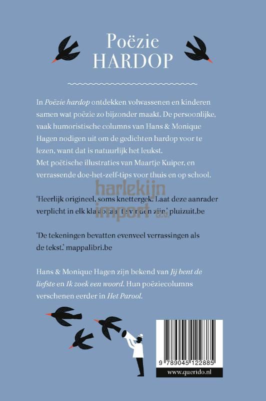 Speelse introductie op de rijkdom van gedichten, door Kinderboekenambassadeurs Hans & Monique Hagen. Zij schreven van 2017-2019 columns voor Het Parool waarin ze laten zien hoe fijn het is om gedichten te lezen. Op een persoonlijke, soms humoristische manier leggen ze de schoonheid van gedichten bloot, in de hoop dat ze hardop voorgelezen worden aan de keukentafel of op de bank. Zo kunnen volwassenen en kinderen samen de liefde voor poëzie ontdekken.<br> Een prachtige kennismaking met de rijkdom van taal en poëzie. Van Hans Andreus en Abdelkader Benali tot en met Koos Meinderts en Ted van Lieshout. 35 columns met 95 gedichten van 65 dichters – om thuis en op school hardop voor te lezen of stil van te genieten, voor jong en oud, voor beginners en gevorderden. Onmisbaar bij poëzielessen voor basis- en voortgezet onderwijs, maar ook met suggesties om zelf aan de slag te gaan met poëzie.