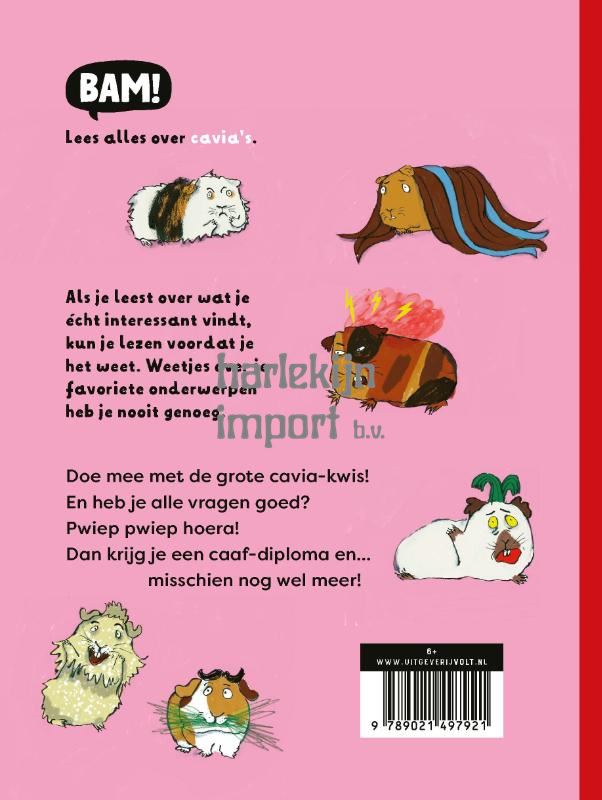 BAM! Lees alles over cavia's.Als je leest over wat je écht interessant vindt, kun je lezen voordat je het weet.Weetjes over je favoriete onderwerpen heb je nooit genoeg.Doe mee met de grote cavia-kwis!En heb je alle vragen goed?Pwiep pwiep hoera!Dan krijg je… een caaf-diploma!‘Nieuwsgierige kinderen kunnen hun hart ophalen aan deze toffe serie. Een aanrader voor kinderen die ongeveer één jaar leesonderwijs hebben gehad.’ – Kinderboekenjournaal‘Kinderen [worden] uitgedaagd om soms een stapje te doen over de grenzen van hun kunnen.’ – Libris Kinderboek van de maand‘De informatieve teksten zijn speels, grappig en vrolijk. De taal is rijk en uitdagend.’ – Boekwijzer‘Een waardevolle toevoeging aan de steeds mooiere verzameling aan lerenlezenboeken die de laatste tijd verschijnen. Ik heb nu al zin in de andere delen!’ – Lang leve lezen‘Hier word ik zo blij van! Alweer zo’n toffe serie die niet zo strak vast houdt aan het AVI niveau!’ – Leesadvies‘Soms ontdek je nieuwe boeken waarbij je meteen denkt: waarom heeft iemand zoiets niet eerder gemaakt?’ – Reformatorisch Dagblad BAM! Lees alles over het strand. Als je leest over wat je écht interessant vindt, kun je lezen voordat je het weet. Weetjes over je favoriete onderwerpen heb je nooit genoeg.