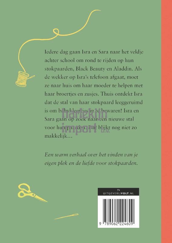 Mama heeft de kast, eh, stal, opgeruimd… Waar moeten de stokpaarden nu wonen?!Iedere dag gaan Isra en Sara naar het veldje achter de school om rond te rijden op hun stokpaarden, Black Beauty en Aladdin. Als de wekker op Isra’s telefoon afgaat, moet ze naar huis om haar moeder te helpen met haar broertjes en zusjes. Thuis ondekt Isra dat haar moeder de stal van haar stokpaard heeft leeggeruimd om er de kleertjes van haar babybroertje te bewaren! Isra en Sara gaan op zoek naar een geschikte stal voor hun paarden. Dat blijkt nog niet zo makkelijk…‘Een mooi verhaal over vriendschap en de vindingrijkheid van kinderen.’ – Minibladet Nationell**** – Bibliotekstjänst, nationaal Zweeds bibliotheekmagazine