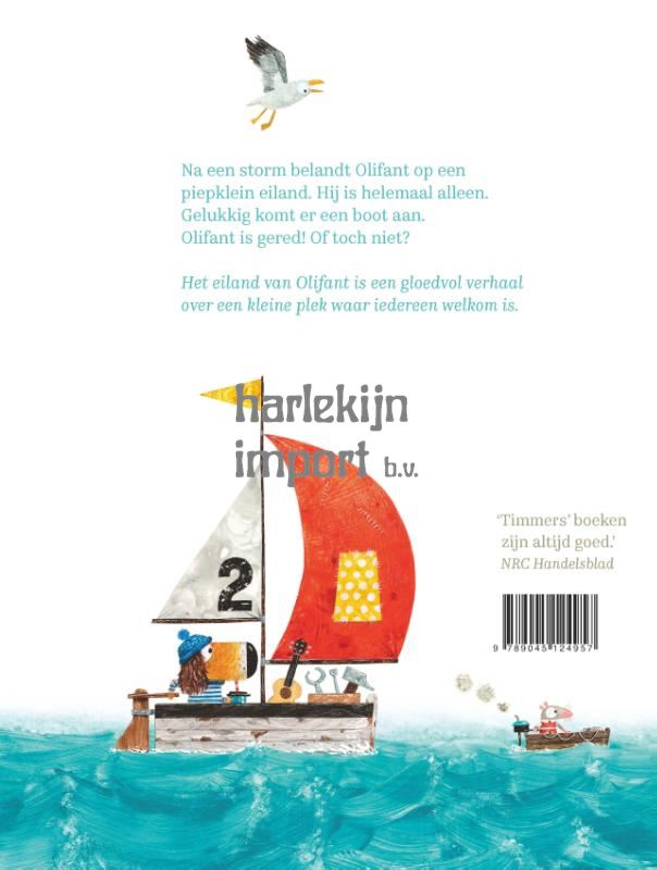 Na een storm op zee belandt Olifant op een eiland. Hij roept om hulp, en kijk, daar komt Muis al aanvaren. Olifant mag bij hem instappen, maar het bootje is veel te klein en breekt. Ook Hond en Krokodil kunnen de schipbreukelingen niet redden. Dus blijven ze allemaal op het eiland. Het wordt er heel gezellig…
