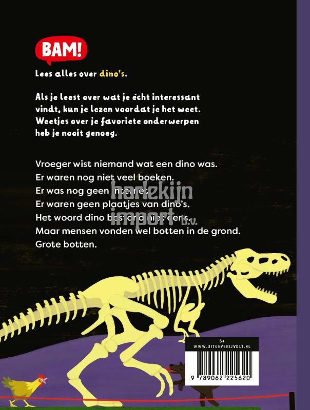 Lees alles over dino's.Als je leest over wat je écht interessant vindt, kun je lezen voordat je het weet. Weetjes over je favoriete onderwerpen heb je nooit genoeg.‘BAM! Ik lees trekt lezerslol tevoorschijn – doordat er makerslol was.’ – Edward van de Vendel‘Nieuwsgierige kinderen kunnen hun hart ophalen aan deze toffe serie.’ – Kinderboekenjournaal