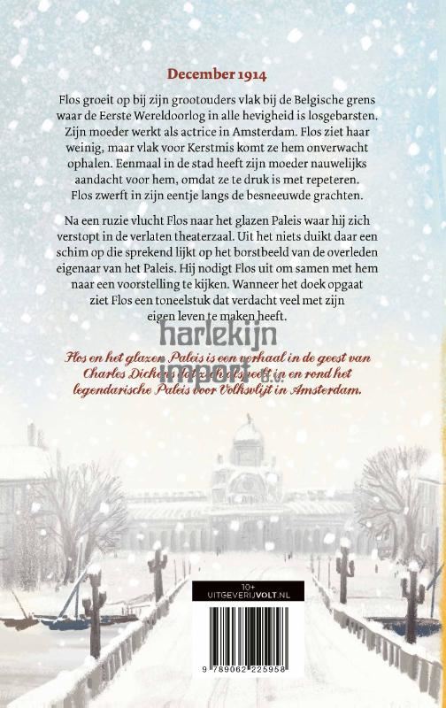 Winter 1914. Flos groeit op bij zijn grootouders. Wanneer zijn moeder als actrice in de schouwburg van het Paleis voor Volksvlijt gaat werken, verhuist Flos naar Amsterdam. Eenmaal aangekomen in de stad loopt niets zoals verwacht. Zijn moeder maakt lange werkdagen en lijkt meer aandacht te hebben voor haar nieuwe liefde, regisseur Ward, dan voor hem. Flos voelt zich eenzaam en een buitenstaander.Overdag zwerft Flos uren door de besneeuwde stad, die zich opmaakt voor Kerst. ’s Avonds kijkt hij vanuit de engelenbak in het glazen Paleis neer op het toneel waar zijn moeder haar rol speelt.Dan wordt het kerstavond. Van Flos wordt verwacht dat hij een rolletje speelt in het kersttoneelstuk, maar na een confrontatie met Ward verschuilt hij zich opnieuw in de engelenbak. Daar ziet hij opeens dat hij niet alleen is. Een paar stoelen verder zit de dood gewaande eigenaar van het paleis. De man nodigt hem uit om naar een toneelstuk te kijken om na afloop te beslissen of hij zijn rol wil spelen of toeschouwer blijft.Over De Titanic en het raadsel van de Grote Omar:‘Rebel & Vos zijn hier steengoed in: op basis van historische feiten een fascinerend verhaal vertellen dat een breed publiek kan aanspreken.’