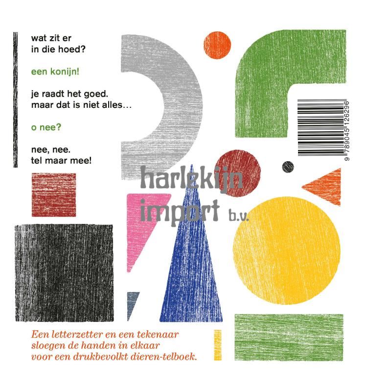 Hooggeëerd publiek, hier komt ie: een goochelaar gemaakt van houten blokjes. Hij tovert 1 konijn, 2 olifanten, 3 dassen… uit zijn hoed. Op elke pagina springen, kruipen of vliegen weer andere dieren uit de hoed. Tot 10 loopeenden. Tel maar mee!