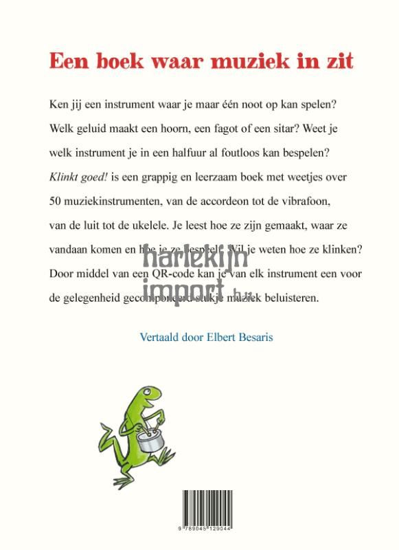 Een grappig en leerzaam boek vol weetjes over 50 muziekinstrumenten, van de accordeon tot de vibrafoon, van de balalaika tot de ukelele. Je leest hoe ze zijn gemaakt, waar ze vandaan komen en hoe je ze bespeelt. Door middel van een QR code kan je van elk instrument een voor de gelegenheid gecomponeerd stukje muziek beluisteren.