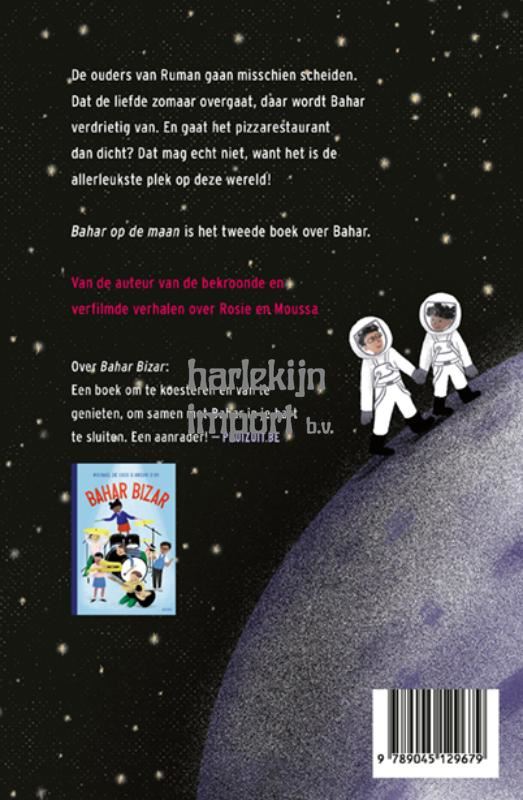 Het lijkt erop dat de pizzeria van de ouders van Ruman zal sluiten, omdat ze gaan scheiden. Dat de liefde zomaar overgaat, daar wordt Bahar verdrietig van. En een wereld zonder pizza’s? Dat is ondenkbaar. Als de kinderen met de klas naar het museum gaan, beramen ze een plan om het restaurant open te houden. In het museum lopen ze met een VR-bril op het maanoppervlak! Ver weg van de aarde: er is geen betere plek denkbaar om de wereld te veranderen… Vervolg op Bahar Bizar, maar kan apart gelezen worden.
