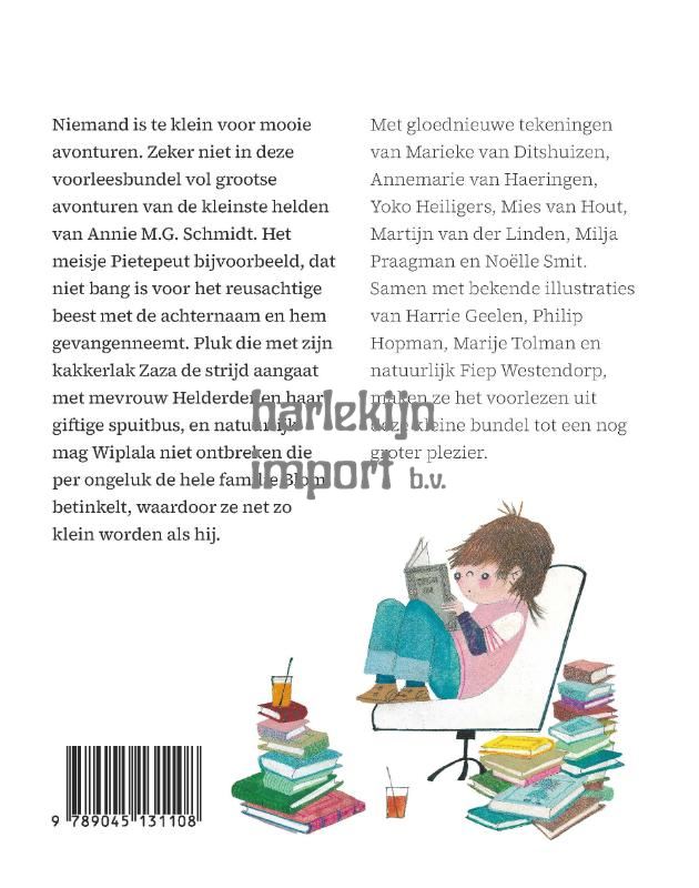 Wie niet groot is moet slim zijn. Of in ieder geval een beetje creatief met de regels omgaan, want anders kom je nergens. Dat weten de hoofdpersonen in de verhalen en gedichten van Annie M.G. Schmidt maar al te goed. Floddertje maakt handig gebruik van een schildersladder als ze is opgesloten in haar kamer, Prélientje overwint haar verlegenheid en temt drie woeste leeuwen, en het kleine meisje Pietepeut vangt zingend het beest met de achternaam (en wordt en passant koningin). Zelfs een kleine kakkerlak kan iets geweldigs meemaken als Schmidt zich over hem ontfermt. Al die kleine helden zijn bij elkaar gebracht in deze niet heel grote maar wel heel erg mooie voorleesbundel. Met illustraties van Fiep Westendorp en vele anderen.