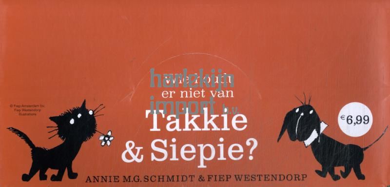 Jip en Janneke zijn gek op dieren. En welke dieren vinden ze het allerliefst? Takkie en Siepie natuurlijk. Takkie kan heel goed zwemmen en hij helpt graag met bellenblazen. Siepie kan pianospelen als de beste en ze eet haar eigen verjaarscadeautje op. Aan avonturen geen gebrek met die twee in huis!