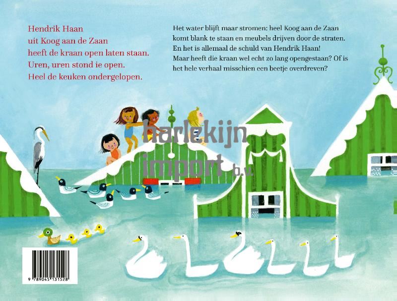 Hendrik Haan uit Koog aan de Zaan heeft de kraan open laten staan. Uren, uren stond ie open. Heel de keuken ondergelopen. En daar blijft het niet bij in dit geweldige lied van Annie M.G. Schmidt. Heel Koog aan de Zaan komt blank te staan, meubels drijven door de straten, en er is niemand meer in leven! Of is het misschien allemaal een beetje overdreven? Is er sprake van fake news in Koog aan de Zaan? Hendrik Haan werd voor het eerst gezongen in de televisieserie Ja Zuster, Nee Zuster en is altijd populair gebleven. Noëlle Smit maakte er een spectaculair prentenboek van.
