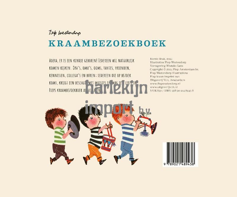 Hoera, er is een kindje geboren! Iedereen wil natuurlijk komen kijken. Om aan deze bijzondere en hectische periode, en aan het bezoek zelf, een blijvende herinnering te houden is er nu een kraambezoekboek met illustraties van Fiep Westendorp. Opa’s, oma’s, ooms, tantes, vrienden, kennissen, collega’s en buren; iedereen die naar de baby komt kijken, krijgt beschuit met muisjes en mag iets liefs in Fieps Kraambezoekboek achterlaten.