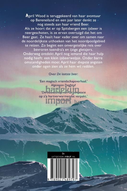 Er is een ijsbeer neergeschoten… is het Beer?April Wood is teruggekeerd van haar avontuur op Bereneiland, en een jaar later denkt ze nog steeds aan haar vriend Beer.Als ze hoort dat er op Spitsbergen een ijsbeer is neergeschoten, is ze ervan overtuigd dat het om Beer gaat. Ze haalt haar vader over om samen naar de noordelijkste uithoeken van het noordpoolgebied te reizen. Zo begint een onvergetelijke reis over bevroren toendra’s en ijzige gletsjers.Onderweg ontdekt April nog iemand die haar hulp nodig heeft: een klein ijsbeerwelpje. Onder barre omstandigheden moet April haar diepste angsten onder ogen zien als ze hem wil redden.Op zoek naar Beer is het verbluffende vervolg op De laatste beer.Pers over De laatste beer:‘Een magisch vriendschapsverhaal.’ – Jaap Friso in Algemeen Dagblad‘De boodschap van Greenpeace op zijn hartverwarmendst verpakt.’ – Joukje Akveld in Het Parool