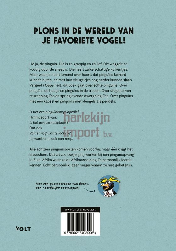Een plons in de wereld van je favoriete vogel!Hè ja, de pinguïn. Die is zo grappig en lief. Die waggelt zo koddig door de sneeuw. Die heeft zulke schattige kuikentjes. Maar waar je nooit iemand over hoort: dat pinguïns keihard kunnen bijten, en met hun vleugeltjes nog harder kunnen slaan. Joukje Akveld verhuisde naar Zuid-Afrika en werd vrijwilliger bij een pinguïnopvang. Ze ontdekte dat pinguïns behalve komisch en aandoenlijk ook sterk en agressief zijn. Rock de pinguïn! laat je kennismaken met de échte pinguïn. Een boek over buikschuivers en vleugels als peddels. Over pinguïns op het ijs en pinguïns in de tropen. Alle achttien soorten komen voorbij, maar één krijgt het erepodium. Omdat een boek pas een kloppend hart krijgt als je het persoonlijk maakt. En de Afrikaanse pinguïn, die kent Akveld persoonlijk – geen vinger waarin ze niet gebeten is.