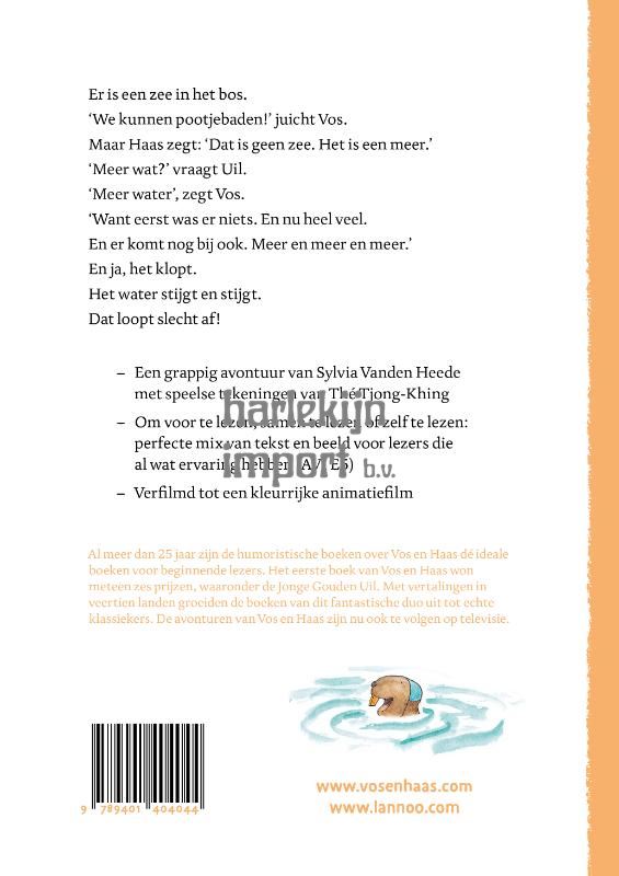 Er is een zee in het bos. 'We kunnen pootjebaden' juicht Vos. Maar Haas zegt: 'Dat is geen zee. Het is een meer.' 'Meer wat?' vraagt Uil. 'Meer water', zegt Vos. 'Want eerst was er niets. En nu heel veel. En er komt nog bij ook. Meer en meer en meer.' En ja, het klopt. Het water stijgt en stijgt. Dat loopt slecht af!