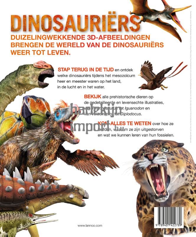 Dé must-have voor dinofans met unieke 3D-afbeeldingen. De duizelingwekkende illustraties brengen meer dan 60 prehistorische dieren weer tot leven. Stap terug in de tijd en ontdek welke dinosauriërs tijdens het mesozoïcum heer en meester waren op het land, in de lucht en in het water. Met gedetailleerde illustraties van Tyrannosaurus tot Iguanodon en van Velociraptor tot Diplodocus.