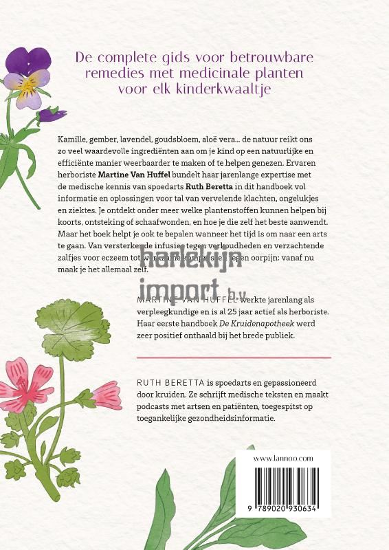 Voor heel wat veelvoorkomende kinderkwaaltjes hoef je echt niet meteen naar de dokter te stappen. De natuur reikt ons zo veel waardevolle ingrediënten aan om je kind op een natuurlijke en efficiënte manier te helpen. Als herboriste met jarenlange ervaring weet Martine Van Huffel de perfecte oplossing voor tal van vervelende klachten, ongelukjes en ziektes en heeft ze bovendien een arsenaal aan tips om de weerstand te verhogen. Spoedarts Ruth Beretta garandeert dan weer de juiste informatie over de symptomen, mogelijke oorzaken… en wanneer het nodig is om naar een arts toe te stappen. In dit boek bundelen ze hun kruiden- en wetenschappelijke kennis, waardoor je zelfs als leek perfect op deze middelen kunt vertrouwen. Van versterkende infusies tegen verkoudheden en verzachtende zalfjes voor eczeem tot werkzame kruidencapsules tegen buikkrampen of een plantaardige pleister op schaafwonden, vanaf nu maak je het allemaal zelf.