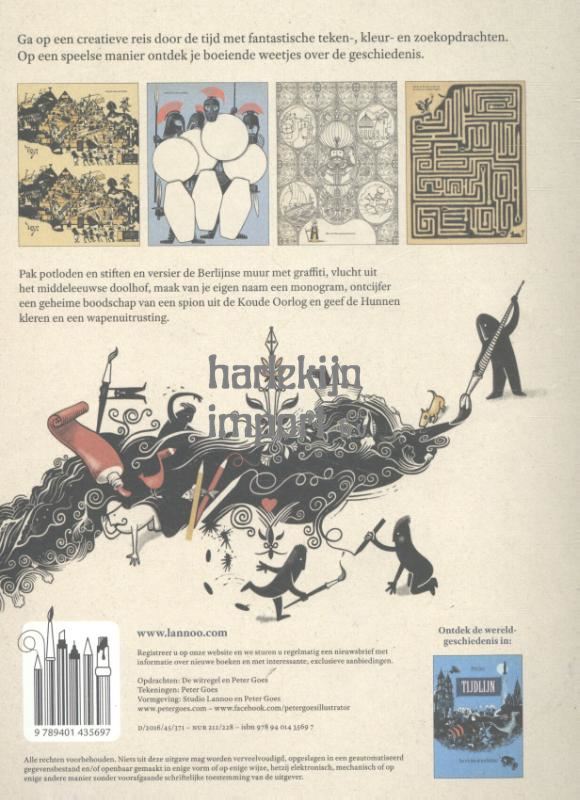 Een creatief doeboek bij de bestseller Tijdlijn Werk de Vikingschepen af en versier ze. Geef de Hunnen kleren en een wapenuitrusting. Byzantium was een drukke wereldstad, zoek de tien verschillen. Maak van je eigen naam een monogram. Vlucht uit het middeleeuwse doolhof zonder dat de ratten je te pakken krijgen. Gebruik de code om een geheime boodschap van een spion uit de Koude Oorlog te lezen. Versier de Berlijnse muur met graffiti.