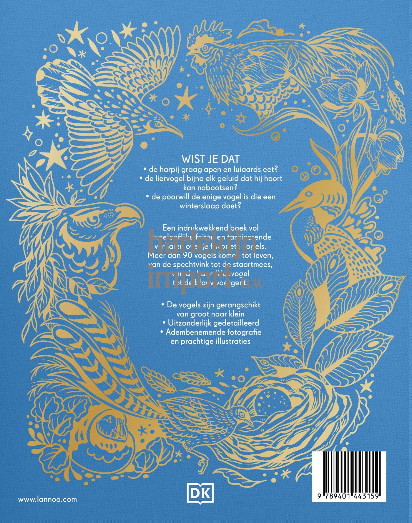 Wist je dat de harpij graag apen en luiaards eet? de liervogel bijna elk geluid dat hij hoort kan nabootsen? de poorwill de enige vogel is die een winterslaap doet? Een indrukwekkend boek vol ongelooflijke feiten en fascinerende verhalen over je favoriete vogels. Meer dan 90 vogels komen tot leven, van de spechtvink tot de staartmees, van de baardklokvogel tot de blauwvoetgent. Schitterend afgewerkt met goudfolie, leeslint en goud op snee De vogels zijn gerangschikt van groot naar klein Uitzonderlijk gedetailleerd Adembenemende fotografie en prachtige illustraties