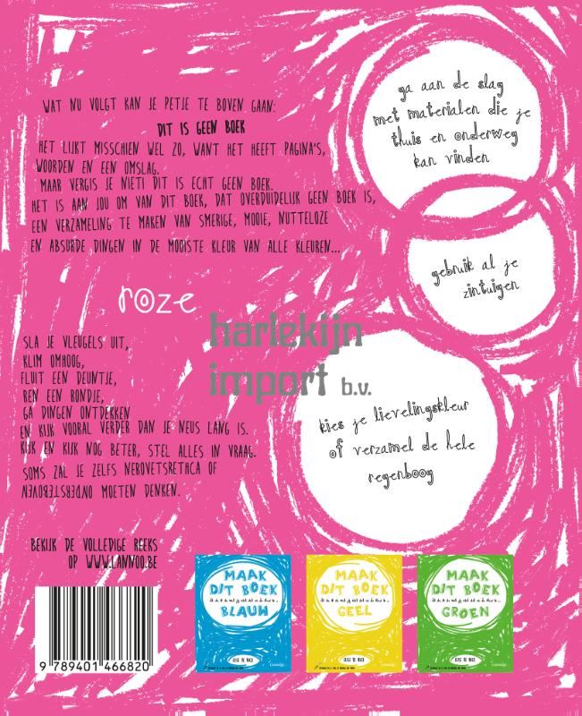 Ik zie, ik zie wat jij niet ziet en het is... is een reeks van 4 doe-boekjes voor kinderen met telkens één kleur in de hoofdrol! De kinderen worden uitgedaagd om kunst te maken met voorwerpen en materialen die ze thuis, onderweg, op school... kunnen vinden.
