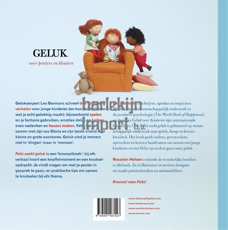 Felix zoekt geluk is een 'knusselboek': bij elk verhaal over Felix hoort een knuffelmoment en een knutselopdracht.