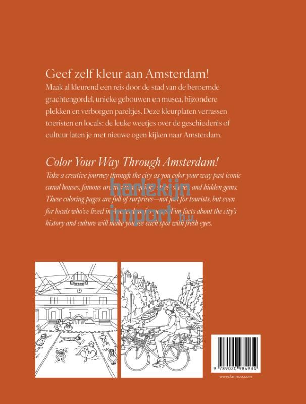 Houd je van Amsterdam en heb je zin in een therapeutische activiteit om je brein even tot rust te laten komen? Met dit kleurboek breng je de ziel van de stad tot leven in jouw huiskamer. Al kleurend maak je een reis door de stad, van de beroemde grachtenpanden en de bekende architectuur tot grappige straatbeelden of verborgen pareltjes... Of je Amsterdam nu voor het eerst bezoekt of er al jaren woont, voor elke liefhebber zijn er verrassende kleurplaten. Bovendien zijn ze stuk voor stuk verrijkt met een leuk weetje over de Amsterdamse geschiedenis of cultuur, die je met nieuwe ogen naar elke locatie doet kijken. De prachtige afwerking met een luxe hardcover en dik papier, maakt het bovendien een perfect cadeautje voor elke creatieveling!