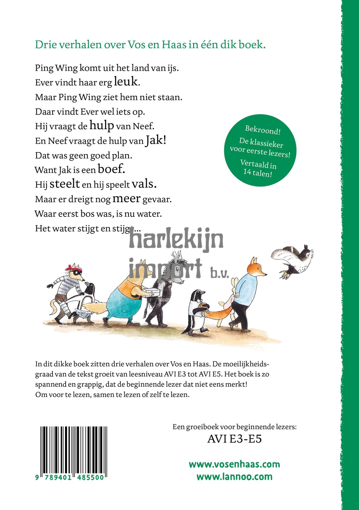In dit dikke boek zitten drie verhalen over Vos en Haas. De moeilijkheidsgraad van de tekst groeit van leesniveau AVI E3 tot AVI E5. Het boek is zo spannend en grappig, dat de beginnende lezer dat niet eens merkt!
