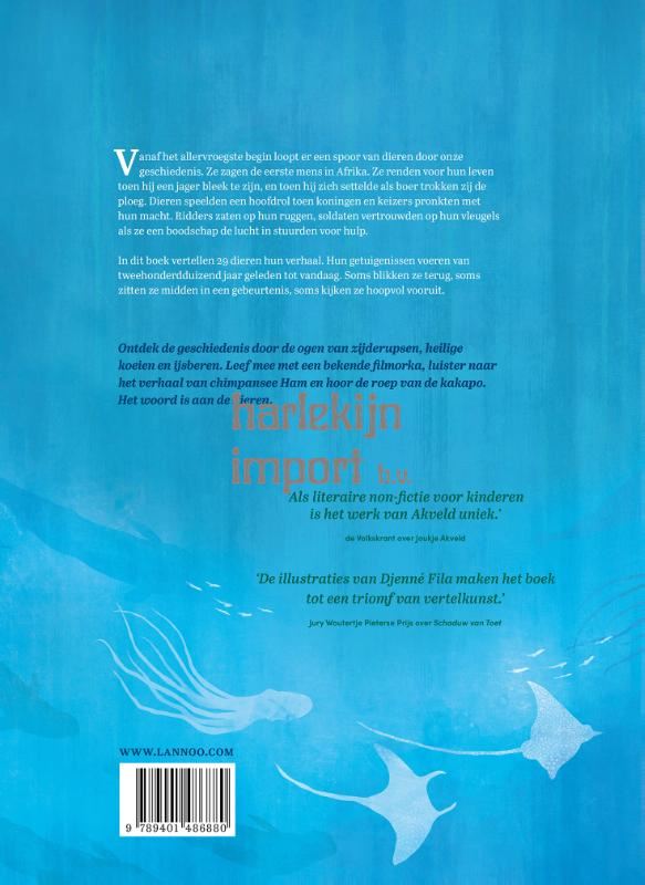 In dit boek vertellen 29 dieren hun verhaal. Hun getuigenissen voeren van tweehonderdduizend jaar geleden tot vandaag. Soms blikken ze terug, soms zitten ze midden in een gebeurtenis, soms kijken ze hoopvol vooruit.