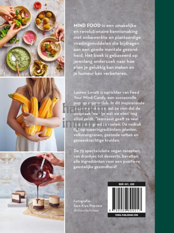 Mind Food is geïnspireerd op jarenlang onderzoek naar hoe voedsel ons gelukkig kan maken en ons humeur kanverbeteren. Lauren Lovatt brengt lezers van dit smakelijke kookboek opnieuw in contact met het adagium 'we zijn wat we eten'. Ze richt zich daarbij op gerechten met planten, volkorengranen, gezonde vetten, peulvruchten en tonica: ingrediënten die kunnen zorgen voor een emotionele balans, met een scheutje creativiteit en een vleugje magie!