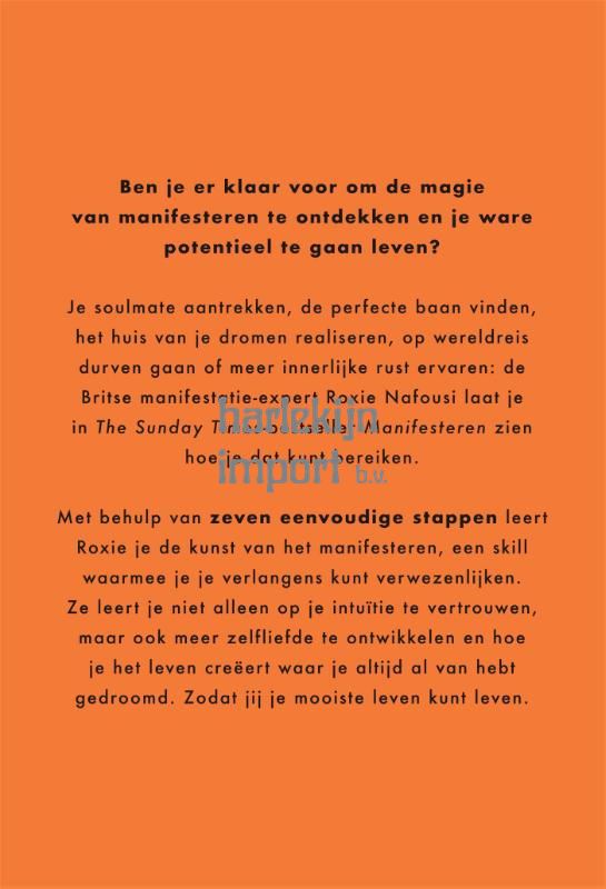 In 'Manifesteren' laat manifestatie-expert Roxie Nafousi je kennismaken met het fenomeen manifesteren. Je soulmate aantrekken, de perfecte baan vinden, je dromen realiseren: Roxie laat zien hoe je dát kunt bereiken met behulp van de law of attraction. Aan de hand van zeven eenvoudige stappen leert ze je de kunst van het manifesteren, waardoor jij het leven waarvan je altijd al hebt gedroomd kunt creëren. Manifesteren is een filosofie die wetenschap en wijsheid samenbrengt en tegelijkertijd een skill die je kunt leren om je doelen mee te verwezenlijken. Dit boek is dé toegankelijke gids die jou leert op je intuïtie te vertrouwen, meer zelfliefde te ontwikkelen en je mooiste leven te leven. 'Manifesteren' is niet alleen een must-have voor alle manifesteerjunkies, maar voor iedereen die een doel of droom heeft.