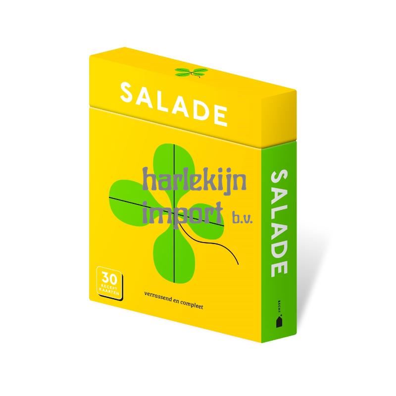 Met de 30 receptkaarten uit 'Salade' maak je de allerlekkerste salades klaar. Kies voor een kikkererwtensalade met harissa, een knapperige appel-venkelsalade of een klassieke caesarsalade of een salade Niçoise: door de recepten uit deze receptenbox heb je boordevol inspiratie om de keuken in te duiken. Ontdek salades met pit, extra crunch, een lekker zuurtje, salades met vis, vlees of alleen met veggies - er is voor ieder wel wat wils. Met de receptkaarten van 'Salade' zet je gegarandeerd een lekkere en frisse salade op tafel. De kaarten zijn praktisch in gebruik, afneembaar én mee te nemen als boodschappenlijstje. En met behulp van de handige iconen zie je in een oogopslag welke recepten voldoen aan jouw specifieke eetwensen. Met de receptkaarten van Becht wordt koken een fluitje van een cent.