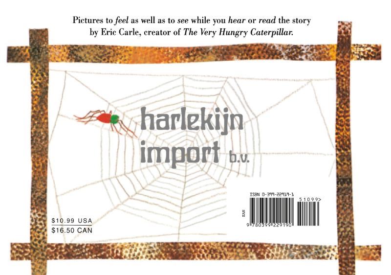 Een prachtig kijk-, luister- en voelboek over een spin die het te druk heeft met het weven van haar web. Eén voor één komen de dieren van de boerderij haar wat afleiding bezorgen, maar de ijverige spin werkt stug door. Ten slotte kan ze laten zien dat haar web niet alleen mooi, maar ook heel nuttig is! In dit bijzondere boek kunnen kinderen het verhaal niet alleen volgen door naar de tekst te luisteren en de illustraties te bekijken, maar ook door te voelen waar de spin en de vlieg zich bevinden, hoe het web steeds groter wordt en op welke manier de spin uiteindelijk in het web terechtkomt.