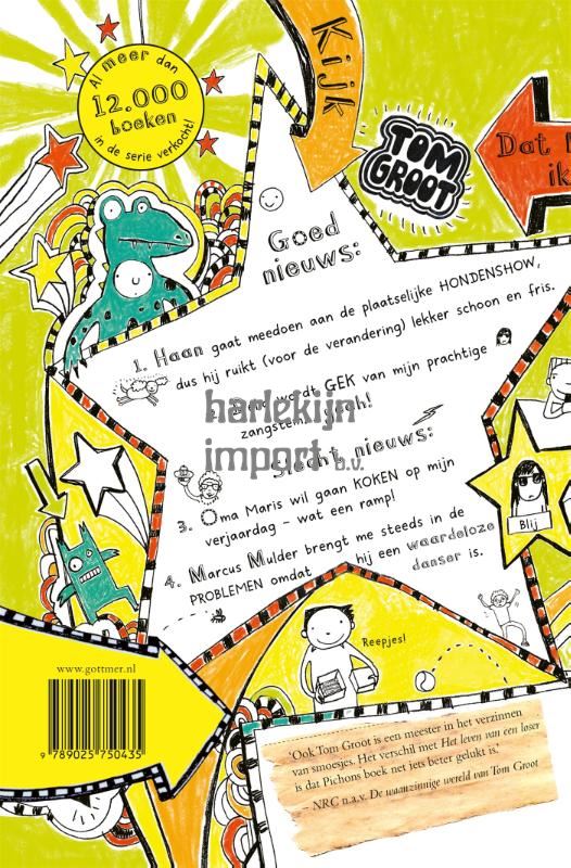 ‘School begint weer, maar dat is geen ramp. Er gaat genoeg leuks gebeuren. Haan gaat meedoen aan een hondenshow, de schooldisco komt eraan en ik ben bijna jarig. En het goede nieuws is dat Delia voor geen van deze dingen is uitgenodigd. Het enige wolkje aan de horizon is mijn verjaardag, want oma heeft beloofd dat ze zal gaan koken… uh-oh!’