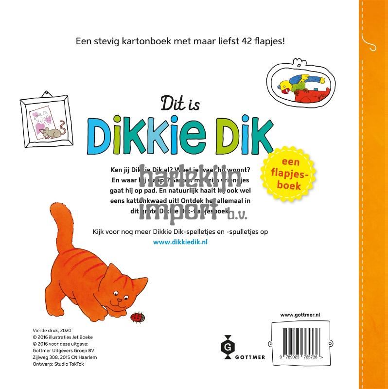 'Dit is Dikkie Dik' is een mooi groot prentenboek boordevol flapjes over de liefste rode kat van Nederland.