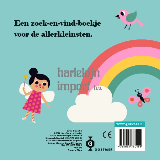 ‘Eenhoorn, waar ben je?’ is alweer het mooie negende deel met flapjes in de populaire peuterserie ‘Waar ben je?’ van de Zweedse ontwerpster Ingela P Arrhenius. Flapjes In ‘Eenhoorn, waar ben je?’ zitten allerlei sprookjesfiguren achter de flapjes verstopt. Kun jij de zeemeermin, de draak, de fee en de eenhoorn vinden? De flapjes zijn gemaakt van vilt: lekker zacht én stevig dus! Een zoek-en-vind-boekje voor de allerkleinsten, met als verrassing een spiegeltje op de laatste pagina. Ingela P Arrhenius Het werk van de Zweedse ontwerpster Ingela P Arrhenius is mateloos populair. Zowel peuters als hun (designliefhebbende) ouders zijn dol op haar onweerstaanbare illustraties en vormgeving. Zo won ‘Beestje, waar ben je?’ de titel ‘Het BoekStart babyboekje van het jaar 2018’ en werden er in korte tijd meer dan 20.000 exemplaren in de serie verkocht.