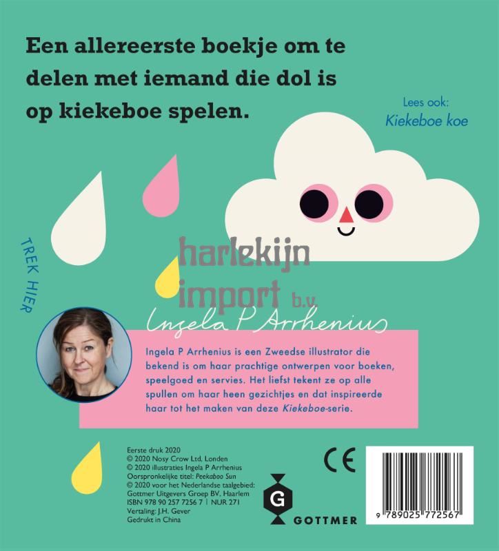 Een onweerstaanbaar, interactief kartonboekje van Ingela P Arrhenius om de wereld mee te ontdekken! Met ‘Kiekeboe zon’ kunnen peuters op een unieke en verrassende manier op onderzoek uit. Draai, schuif en trek om alles te ontdekken! Illustrator Ingela P Arrhenius maakt een feest van de eerste boekjes voor je peuter. Haar speelse ‘Waar ben je?’-serie is al jarenlang een groot succes. Deze prachtige kartonboekjes uit de ‘Kiekeboe’-serie zitten vol verrassingen!