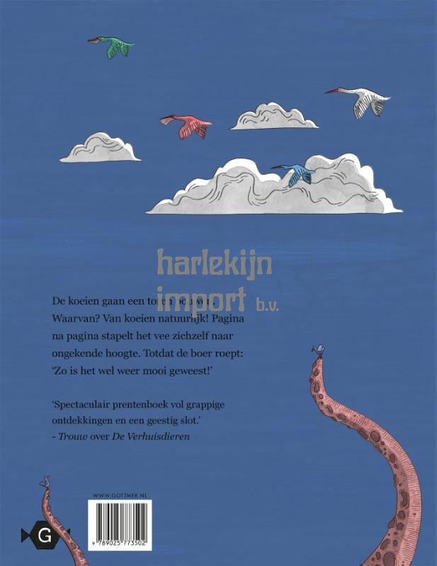 De koeien gaan een toren bouwen en de hele wei helpt mee.