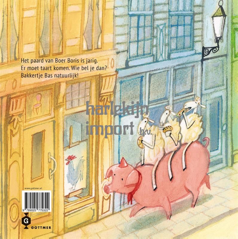 ‘Boer Boris en bakkertje Bas’ is alweer het veertiende deel in de razend populaire serie prentenboeken over Boer Boris van Ted van Lieshout en Philip Hopman. Ook dit deel speelt zich weer af op de boerderij van Boer Boris – maar ook een beetje in de bakkerij van bakkertje Bas. Knol is jarig en dat moet gevierd worden! Boer Boris kan veel zelf, maar een taart bakken, dat laat hij liever aan de echte bakker over. Bakkertje Bas bakt een prachtige paardentaart voor Knol. Hij komt hem zelfs bezorgen. Maar dan krijgt bakkertje Bas pech onderweg en belandt hij met bestelbus en al in de sloot. Daar kan boer Boris gelukkig weer bij helpen! Hij takelt de bakker uit de sloot en dan kan het verjaardagsfeest eindelijk beginnen. Ted van Lieshout en Philip Hopman blijven een onverslagen prentenboeken-duo, en Boer Boris een onvergetelijke hoofdpersoon!