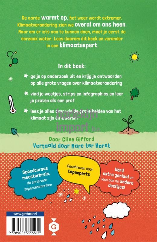 <p>In 'Spoedcursus meesterbrein - Het hoe en waarom van klimaatverandering' wordt een van de meest besproken onderwerpen van het moment behandeld: het klimaat. De aarde warmt op, het weer wordt extremer. Klimaatverandering zien we overal om ons heen. Maar om er iets aan te kunnen doen, moet je eerst de oorzaak begrijpen. Lees daarom dit boek en wordt een klimaatkenner. De klimaatproblematiek én alle hoopvolle, creatieve en slimme oplossingen worden gebracht in interessante teksten, rubrieken, vragen en weetjes. Dit boek is perfect voor nieuwsgierige lezers vanaf negen jaar en staat vol strips, illustraties, diagrammen en checklijstjes, waardoor de informatie super toegankelijk is.<br><br>Duik in de 'Spoedcursus meesterbrein'-serie en word in no time een topexpert over van alles en nog wat. Deze superinformatieve en kleurrijk geïllustreerde serie is geschreven door gerenommeerde non-fictieauteurs, meegelezen door absolute helden in elk vakgebied en vertaald door een aantal van de beste non-fictieauteurs van Nederland. Vergroot je kennis, vocabulaire en begrip van onderwerpen als het klimaat, het universum, robots en artificial intelligence en oceanen.</p>