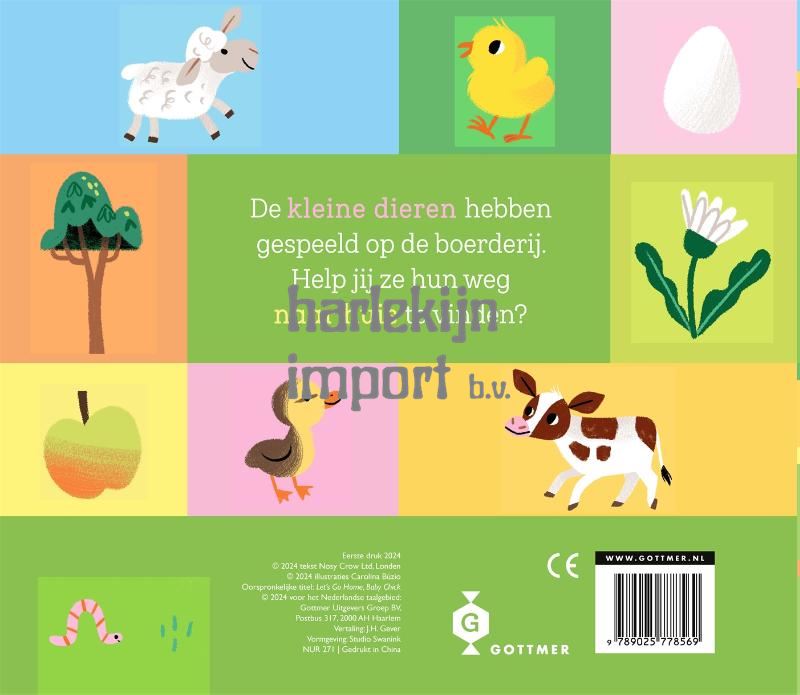 Ga op ontdekkingstocht op de boerderij in het stevige kartonboekje 'Kom je thuis, klein kuiken' en help vier babydieren de weg terug naar huis te vinden. In het vrolijke boekje kunnen peuters een schattig kuikentje, een lammetje, een eendje en een kalfje helpen om de weg naar hun huis te zoeken. Peuters kunnen de babydieren begeleiden langs vier unieke paden met behulp van de gemakkelijk te bewegen schuifjes en leren zo spelenderwijs nieuwe woordjes. De lieve illustraties in frisse kleuren nodigen peuters uit om op ontdekkingsreis te gaan op het erf van de boerderij, en de schuifjes zijn goed voor de ontwikkeling van de hand-oogcoördinatie, concentratie en de fijne motoriek. Geschikt voor peuters vanaf 18 maanden. Illustrator en animator Carolina Búzio heeft al meer dan tien jaar aan ervaring in grafisch ontwerp. Of het nu gaat om boekillustraties, posters, of gepersonaliseerde kunstwerken, Carolina's werk straalt altijd originaliteit uit. Ze weet als geen ander hoe ze de juiste sfeer en emotie in haar illustraties kan vangen.