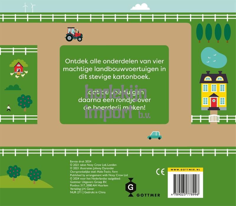 De boeken in de Een rondje met-reeks zijn allemaal een visueel en interactief feestje - en dat geldt zeker voor 'Een rondje met de tractor'. Elk kartonboek in deze peuterboekenserie heeft plaatjes van coole voertuigen die je kunt laten rijden. Peuters en kleuters kunnen in dit deel genieten van stoere landbouwvoertuigen, zoals een rode tractor en een groene maaidorser, terwijl ze over hobbelige akkers en velden racen. Hoeveel schapen kunnen ze spotten? En waar verstopt de schaapshond zich? Met handige schuifjes kunnen kinderen de machines soepel over het erf bewegen. Dit is het perfecte boek voor kinderen vanaf 2 jaar oud die dol zijn op tractoren en zelf graag achter het stuur kruipen! Ontdek ook alles over bouwvoertuigen en verschillende soorten auto's in 'Een rondje over de bouwplaats' en 'Een rondje met de auto'. En voor liefhebbers van reusachtige trucks en stoere treinen zijn er 'Een rondje met de vrachtwagen' en 'Een rondje met de trein'. Elk kartonboek zit vol coole voertuigen die je zelf kunt laten rijden.