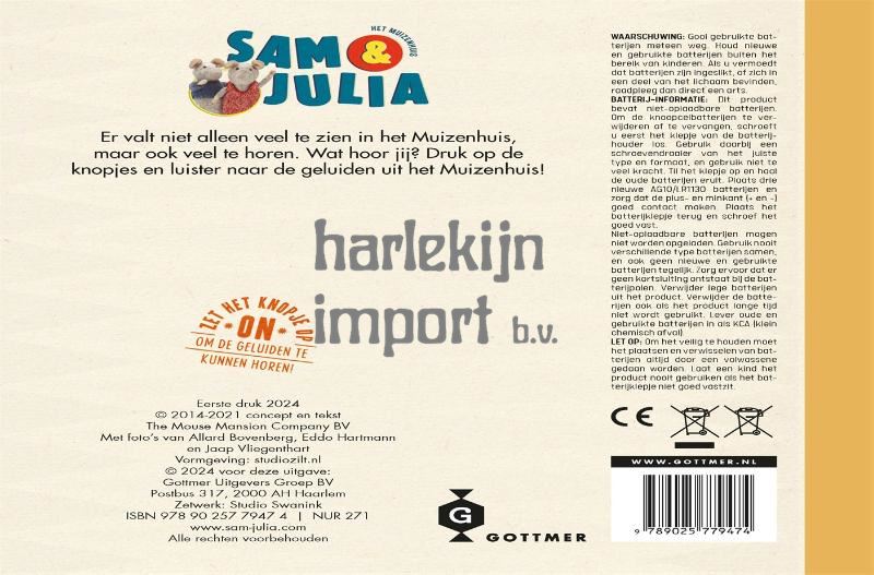 In het Muizenhuis is veel te zien, maar ook veel te horen. Neem een kijkje in het leven van Sam en Julia in het geluidenboek 'Wat hoor je daar? '. Rinkeldekinkel! O nee, wat valt daar om? Waar zou die mooie muziek vandaan komen? Hoor je Sam spelen op zijn trompet? En welk geluid komt er uit het kleinste kamertje? Natuurlijk zijn alle geluiden voorzien van prachtige foto's van het geliefde Muizenhuis en omstreken, vol met doordachte en vrolijke details om te zoeken. Druk op de knopjes, luister goed en ga mee op ontdekkingstocht door het Muizenhuis. Geschikt voor lezers vanaf 3 jaar. De geschiedenis van het Muizenhuis begon met Karina Schaapman, een Nederlandse kinderboekenschrijfster en kunstenares. Zij startte in 2008 met geduld, precisie en een ongelooflijk oog voor detail met het bouwen van honderden bouwwerken vol huizen, winkels, straten en buitenruimtes op muizenmaat. Het Muizenhuis is volledig met de hand gemaakt van afvalmateriaal en vintage elementen en resulteerde in een reeks prachtige kinderboeken, waarvan 'Het Muizenhuis - Sam en Julia' het eerste deel is. Aan de hand van de boeken uit de Muizenhuis-reeks leer je steeds een nieuw stukje van de muizenwereld kennen. De geschiedenis van het Muizenhuis begon met Karina Schaapman, een Nederlandse kinderboekenschrijfster en kunstenares. Zij startte in 2008 met geduld, precisie en een ongelooflijk oog voor detail met het bouwen van honderden bouwwerken vol huizen, winkels, straten en buitenruimtes op muizenmaat. Het Muizenhuis is volledig met de hand gemaakt van afvalmateriaal en vintage elementen en resulteerde in een reeks prachtige kinderboeken, waarvan 'Het Muizenhuis - Sam en Julia' het eerste deel was. Aan de hand van de boeken uit de Muizenhuis-reeks leer je steeds een nieuw stukje van de muizenwereld kennen.