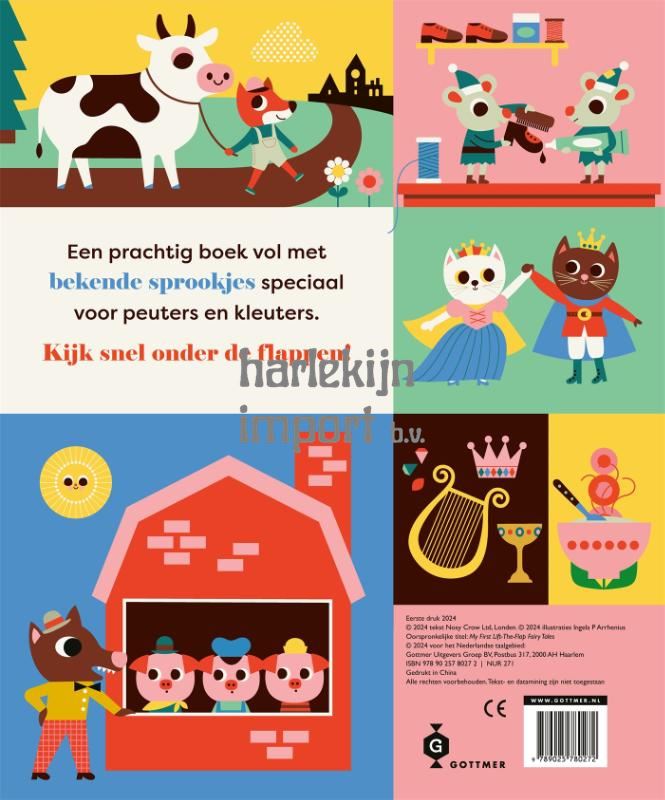 'Mijn eerste sprookjesboek' maakt bekende sprookjes toegankelijk voor de allerjongsten. Dit kartonboekje is origineel uitgevoerd, vol verborgen flappen en met betoverende illustraties van Ingela P Arrhenius. Van Roodkapje tot De drie biggetjes: laat kleintjes kennismaken met de mooiste tijdloze sprookjes. Met een sprookje per spread is het boek makkelijk te volgen voor jonge kinderen en behapbaar voor ouders. De makkelijk op te tillen flappen onthullen op elke pagina een verrassing. En met zeven bekende sprookjesverhalen om samen te lezen zal 'Mijn eerste sprookjesboek' keer op keer uit de kast worden gepakt om voorgelezen te worden. De Zweedse illustrator en ontwerper Ingela P Arrhenius maakt al meer dan 30 jaar kleurrijke illustraties met een vintage touch. Haar werk loopt uiteen van kinderboeken tot verpakkingen en van behangpatronen tot speelgoed, maar in welke vorm ze haar designs ook giet, haar liefde voor retro komt er altijd in terug. Haar stevige, grafische stijl is onweerstaanbaar voor peuters en hun hippe ouders, en haar herkenbare boeken verschijnen wereldwijd inmiddels in meer dan 20 talen. 'Mijn eerste sprookjesboek' is een leuk kinderboek voor kinderen vanaf ongeveer 2 jaar.