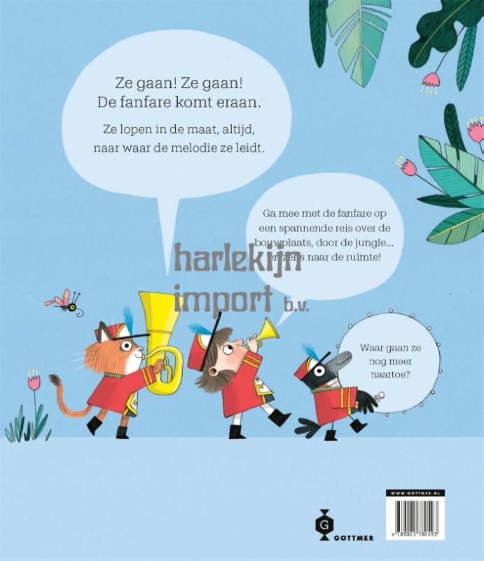 Het aanstekelijke prentenboek 'Daar komt de fanfare' is een uitbundig en muzikaal avontuur op rijm en zal iedereen in beweging krijgen. Ruim baan, want de fanfare komt eraan! In dit swingende prentenboek volgen we een vrolijke groep muzikanten die eerst door de stad trekken en daarna verder marcheren, steeds nieuwe leden verzamelend. Reis mee met de fanfare naar bouwplaatsen, verre jungles, tropische stranden en nog veel meer spannende plekken. De speelse, rijmende tekst van Kael Tudor maakt dit een heerlijk voorleesboek, ideaal voor peuters en kleuters. Illustrator Kate Hindley, bekend van populaire titels als 'Wie heeft Steef opgegeten?' , 'Ik ben ik en jij bent jij' en 'Deze ridder zegt nee', brengt het verhaal tot leven met haar vrolijke, gedetailleerde illustraties. Dit boek is leuk voor kinderen vanaf 3 jaar.