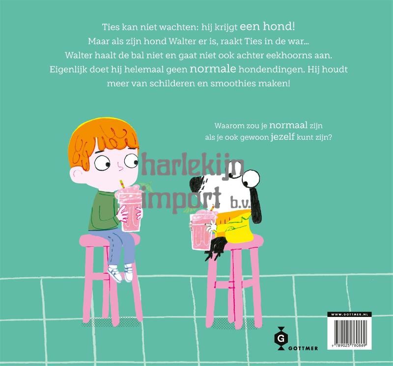 'Niet normaal!' is een hartverwarmend prentenboek over vriendschap, anders zijn en jezelf mogen zijn. Eindelijk is het zover: Ties krijgt een hondje! Hij kan niet wachten. Maar als de hond - Walter Hartog is de naam - per taxi arriveert, blijkt die heel anders te zijn dan Ties had gedacht. Walter maakt zijn eigen smoothies, schildert graag en kletst gezellig met de kat uit de buurt. Apporteren, eekhoorns achtervolgen of in een mandje slapen? Daar doet hij niet aan. Ties had gehoopt op een normale hond, maar Walter is allesbehalve dat. Ties begint zich zelfs een beetje te schamen. Waarom is Walter niet zoals andere honden? Maar langzaam ontdekt Ties dat hij juist geluk heeft met zo'n bijzondere hond. Want waarom zou je normaal zijn als je gewoon jezelf kunt zijn? Het prentenboek 'Niet normaal' is geschreven en geïllustreerd door Ged Adamson en leert kinderen om vrienden te accepteren en waarderen zoals ze zijn. Geschikt voor kinderen vanaf 3 jaar.