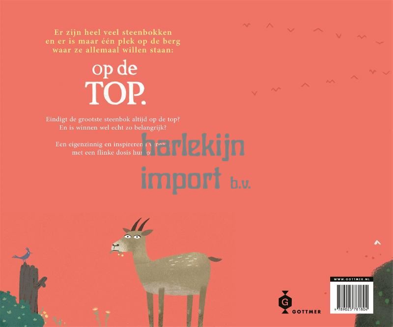 <p>'Op de top' is een prachtig geïllustreerd prentenboek met humor en een filosofisch randje. Er zijn heel veel steenbokken op de wereld, maar er is maar één plekje op de top: het mooiste plekje op de berg, waar iedere steenbok wel wil staan. Een kleine steenbok wordt door de grootste steenbok uitgedaagd voor een gevecht om dit felbegeerde plekje. Een onmogelijke strijd: de kleine steenbok krijgt een fikse kopstoot en neemt de benen. Hij rent van de berg af, over de rivier, door een woestijn, door een bos, springt over een ravijn en ziet dan iets in de verte wat zijn aandacht trekt: een oude wijze berggeit. Hij gaat te rade bij de geit en spoedt zich vol inspiratie terug naar zijn berg, waar hij zijn rivalen verslaat. Nu staat híj op de top. Maar... is winnen eigenlijk wel alles? En is die geit wel zo wijs (en oud) als hij lijkt?<br><br>Frank Weber daagt in 'Op de top' jonge lezers uit om zich af te vragen: is winnen nou echt zo belangrijk? De illustraties van topklasse en de humoristische tekst maken dit eigenzinnige prentenboek tot een veelbelovende nieuwe favoriet. Dit boek is leuk voor kinderen vanaf 4 jaar.</p>