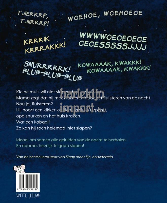 Mama zegt dat hij moet luisteren naar het fluisteren van de nacht. Nou ja, fluisteren? Hij hoort een kikker kwaken, krekels tjirpen, opa snurken en het huis kraken.