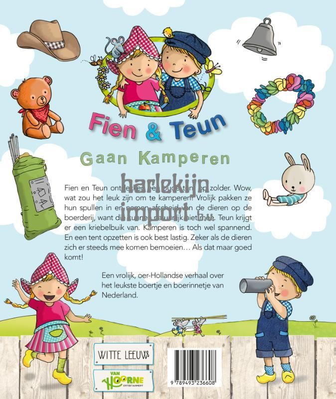 Fien en Teun ontdekken een oude tent op zolder. Wow, wat zou het leuk zijn om te kamperen! Papa en mama vinden het goed. Vrolijk pakken ze hun spullen in en nemen afscheid van de dieren op de boerderij, want die kunnen natuurlijk niet mee. Teun krijgt er een kriebelbuik van. En een tent opzetten blijkt ook best lastig. Zeker als de dieren zich er toch mee komen bemoeien… Als dat maar goed komt!
