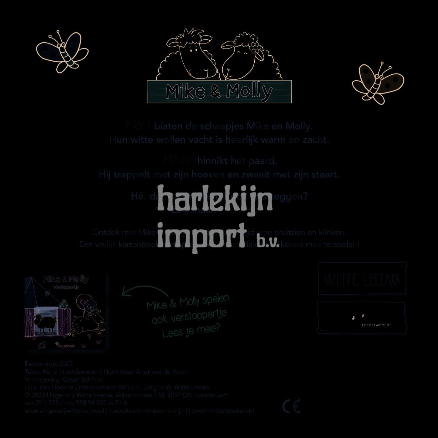 Ontdek met Mike & Molly hoe de boerderijdieren eruitzien en welke geluiden ze maken. Een vrolijk kartonboek met spiegeltje, om eindeloos kiekeboe mee te spelen!